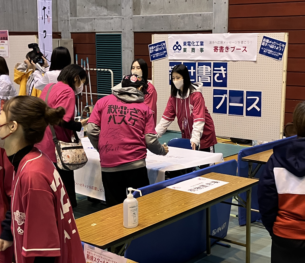 11月9日(日)群馬クレインサンダーズ戦のゲームスポンサー 東電化工業・東商事では、当日に会場を巡って集めるスタンプラリーや、美味しいりんごの販売、選手に向けた寄書きの募集、日本赤十字社秋田支部の協力のも、AED講習会を実施します。みなさんぜひ、お立ち寄りください。